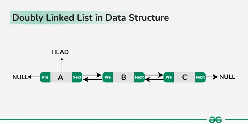 Klasa LinkedList działa na podstawie tzw. DoubleLinkedList, czyli każdy n-ty elementy tablicy przechowuje referencje do następnego oraz poprzedniego elementu. Wygląda to następująco: